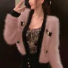 Feature: Novel, Kawaii, Japan, Cute, Casual, V-Neck Cardigan, Fuzzy Cardigan, Knit Cardigan, Women Cardigan, Cropped Cardigan