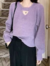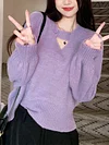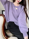 Feature: Novel, Kawaii, Japan, Cute, Casual, Knit Sweater, Aesthetic Sweater, Purple Sweater