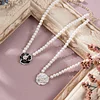 BLACK AND WHITE CAMELLIA PEARL NECKLACE