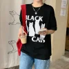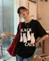 Feature: Sweet, Chic, Kawaii, Japan, Casual, Aesthetic, T-Shirt, Short Sleeve T-Shirt, Black Cats T-Shirts