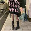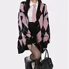 Feature: Novel, Kawaii, Japan, Cute, Casual, V-Neck Cardigan, Rhombus Cardigan, Knit Cardigan, Diamond Check Cardigan