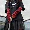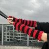 BLACK RED STRIPED KNIT GLOVE SLEEVES/LEG WARMERS