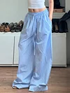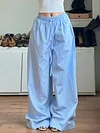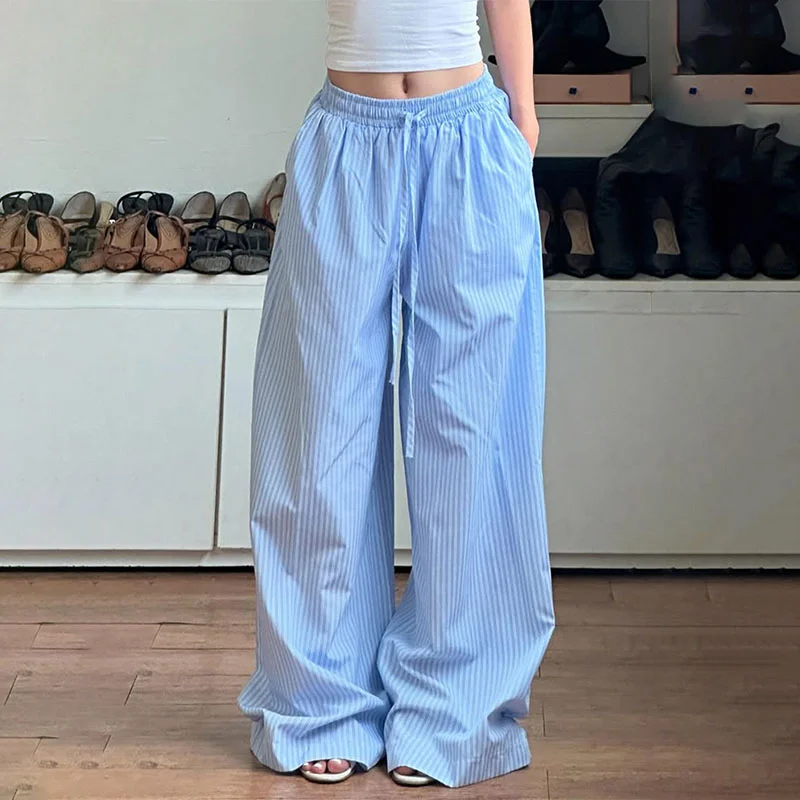 Feature: Sweet, Chic, Kawaii, Japan, Casual, Wide Leg Pants, Casual Pants, Blue Striped Pants