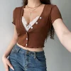 M:Length:39cm/15.4in Bust:74cm/29.1in Waist:64cm/25.2in Shoulder:34cm/13.4in Sleeve:14cm/5.5in