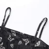You’ll be sweet, graceful and rebellious all at once in this black velvet butterfly dress. This figure-hugging dress has a refreshing vibe that balances perfectly between youthful and elegant. Designed in lustrous black velvet fabric with pretty white butterflies printed all over, it flaunts a sheath silhouette, a straight across neckline and a flirty mini-length hemline. Held up by delicate spaghetti straps, this lovely dress has an effortlessly casual yet undeniably rich appeal.