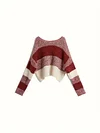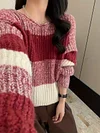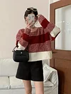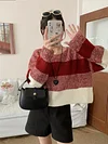 Feature: Novel, Korean Fashion, Long Sleeve Sweater, Short Sweater, Striped Sweater, Contrast Striped Sweater