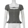 Feature: Kawaii, Cute, Harajuku, Loose, Coquette Top, Aesthetic Top, Ribbed Top