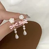 COQUETTE PINK BOW ROSE PEARL EARRINGS
