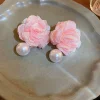 COQUETTE PINK FLOWER STUD EARRINGS