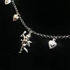 Making everyone fall in love with you may not be a cakewalk, but it’ll definitely get easier when you have this silver cupid angel necklace around your neck. Featuring a sleek silver chain with four heart shaped charms suspended from it at regular intervals, this necklace flaunts a cutesy cupid shaped pendant as its highlight. Armed with his trademark bow and arrow, this little silver cupid will add a trendy touch to all your casual attires. Petite and yet carrying enough weight to be noticeable, this trendy necklace checks all the right boxes. Its silver finish makes it a versatile and dependable choice for accessorizing casual outfits.
