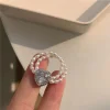 DIAMOND PEACH HEART DOUBLE PEARL ELASTIC RING