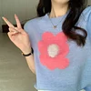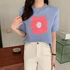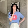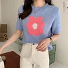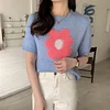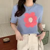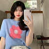 Feature: Elastic, Loose, ,Sweet Girl, Flower Knit Top, Short Sleeve Knit Top, Summer Top, Summer Vibes