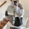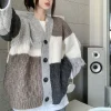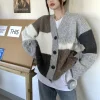 Feature: Novel, Kawaii, Japan, Cute, Casual, V-Neck Cardigan, Patchwork Cardigan, Knit Cardigan, Women Cardigan