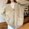 Feature: Novel, Kawaii, Japan, Cute, Casual, V-Neck Cardigan, Fuzzy Cardigan, Knit Cardigan, Women Cardigan