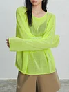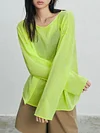 Feature: Elastic, Loose, Sweet Girl, Green Smock Top, Sun Protection Top, Sheer Long Sleeve Top