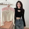 Feature: Elastic, Heart, Loose, Half High Collar, Heart Embroidered