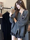 Feature: Novel, Minmalist, Korean Fashion, Solid Color Cardigan, Knit Cardigan, Grey Cardigan, Korean Cardigan