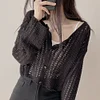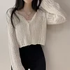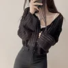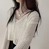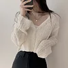 Feature: Elastic, Korean Fashion, Korean Fashion, Hollow Top, Long Sleeve Cardigan Top, Smock Top