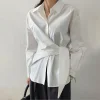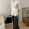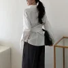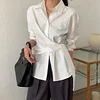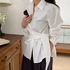 Feature: Trendy, Eye-Catching, Gorgeous, Korean Fashion, Minimalist, Lace Up Shirt, Long Sleeve Shirt