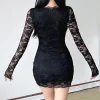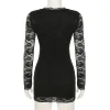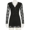 Feature: Bright Colors, Eye-Catching, Distinctive, Black Dress, Long Sleeve Dress, Hip Wrap Dress