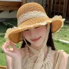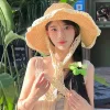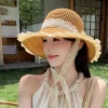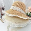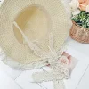OUTDOOR BEACH LACE TRIM WOVEN STRAW HAT