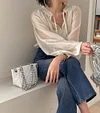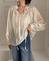 KOREAN V-NECK LANTERN SLEEVE MESH SHIRT WITH SLING VEST