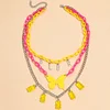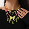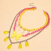 PLUR LETTER BUTTERFLY BEAR PENDANT THREE LAYER NECKLACE