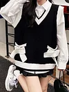 Feature: Novel, Kawaii, Japan, Cute, Casual, Aesthetic, Sweater Vest, Knit Vest, Preppy Style