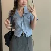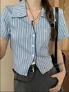 Feature: Sweet, Chic, Kawaii, Japan, Casual, Short Sleeve Shirt, Striped Shirt, Slim Fit Shirt