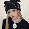 PUNK CAT EAR CROSS CHAIN KNIT HAT