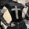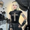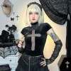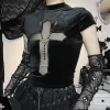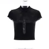 Feature: Chic, Kawaii, Japan, Casual, Punk Style, Cross Slim Fit Top, Black Top