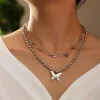 PUNK PIN BUTTERFLY PENDANT DOUBLE LAYER NECKLACE
