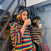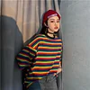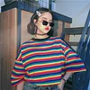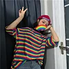 Feature: Rainbow Stripe Tee,Kawaii, Loose