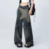 Feature: Lively, Refreshing, Mature, Novel, Blue Jeans, Star Jeans, Y2K Jeans, Denim Jeans, Wide Leg Jeans, Star Girl