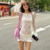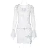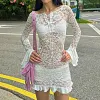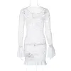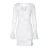 Feature: Bright Colors, Eye-Catching, Distinctive, Sunny and Bright, Lively, Long Sleeve Dress, Lace Dress, See Through Dress