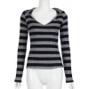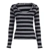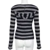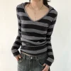 Feature: Harajuku, Loose, Simple, Minimalist, Long Sleeve Knit Top, Striped Long Sleeve Top, Contrast Striped Long Sleeve Knit Top