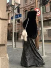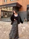 Feature: Vintage, Casual, Kawaii, Chic, Lovely, Midi Skirt, Tie Dye Skirt, Grey Skirt