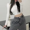 Feature: Elastic, Korean Fashion, Solid Color Top, Long Sleeve Base Top, Long Sleeve Top