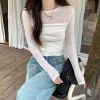 Feature: Kawaii, Cute, Harajuku, Solid Color Top, Long Sleeve Top, Long Sleeve Base Top