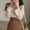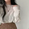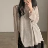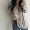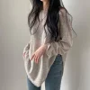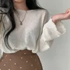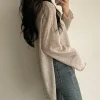 Feature: Elastic, Korean Fashion, Solid Color Long Sleeve Top, Long Sleeve Knit Smock, Sun Protection Top