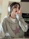 Feature: Lively, Refreshing, Mature, Novel, Contrast Hoodie, Y2K Hoodie, Star Hoodie, Zip Up Hoodie