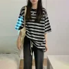 Feature: Lively, Refreshing, Mature, Novel, Short Sleeve, Short Sleeve T-Shirt, Contrast Striped T-Shirt