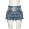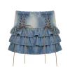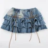 Feature: Vintage, Casual, Kawaii, Chic, Cute, Lovely, Pretty, Aesthetic Mini Skirt, Mini Skirt, Vintage Mini Skirt, Denim Skirt, Denim Cake Skirt
