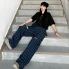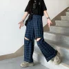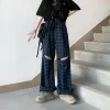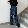 Feature: Thick, Lively, Refreshing, Mature, Novel, Blue Plaid Pants